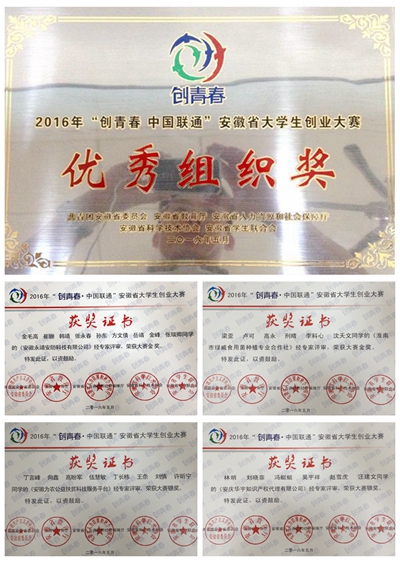 5月28日至30日,2016年“创青春”安徽省大学生创业大赛终审决赛在安徽师范大学圆满落下帷幕。我校精心选送的12件创业项目全部获奖,其中金奖2项、银奖2项、铜奖5项、优秀奖3项,学校被授予大赛“优秀组织奖”。