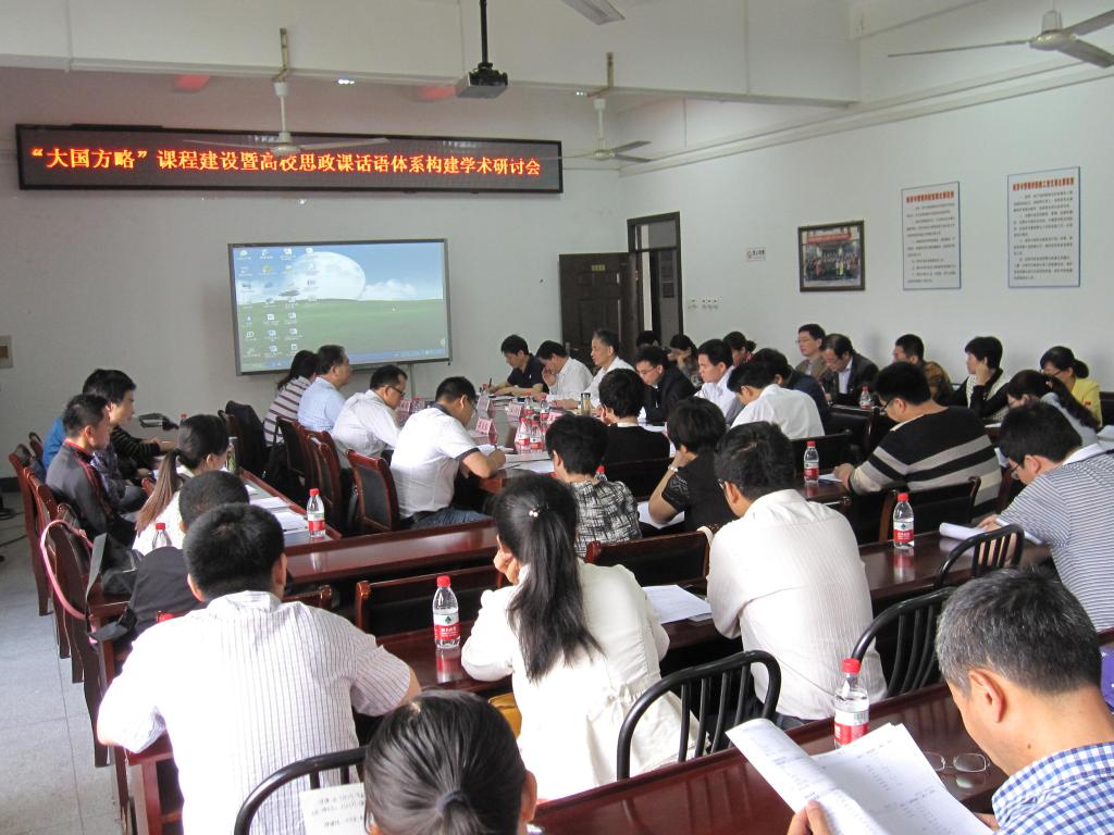上午举行的“‘大国方略’与‘形势与政策’课程建设”专场研讨会,由马克思主义学院院长徐其清主持。王后林介绍了安徽省高校思想政治理论课学科专业建设、平台建设、项目建设等创新举措和取得的成效。宗爱东介绍了上海市高校思政课建设的相关情况。“大国方略”课程负责人忻平教授围绕“转换话语体系,创新思政课建设”发表了自己的观点。他认为,话语体系是提升思政课教学效果的一把钥匙,在思政课教学中要把理论融入故事,用故事讲清道理,用道理赢得认同,用悟道取代灌输。上海市优秀思政课教师顾晓英从“大国方略”课程的设计、开设目标及影响力等方面介绍了“大国方略”话语体系创新。她认为,“大国方略”虽然是一门通识课,但它契合了90后大学生的思想实际、思维方式和学习要求,可以说是高校思政课程的一种拓展和延伸,为思政课教育教学改革提供了一种新思路。校党委常委、宣传部部长吴照明介绍了我校思想政治教育工作及贯彻落实《普通高校思想政治理论课建设体系创新计划》情况,毕业生就业工作处处长、安徽省“弘扬核心价值观”名师工作室负责人谢振安介绍了省级“形势与政策”课名师工作室建设及在“形势与政策”课程教育教学中弘扬社会主义核心价值观有关情况。