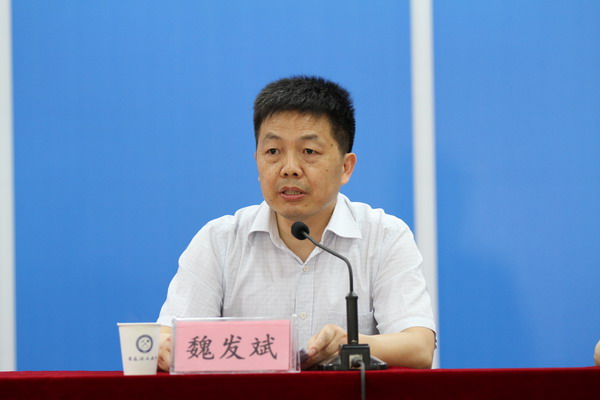 魏发斌宣读了省委、省政府关于我校领导班子调整的决定:郭永存任党委书记;王其东任党委副书记、校长;郑明东任党委委员、常委、副校长。