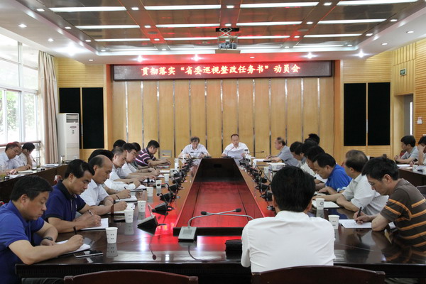 6月16日下午,校党委书记郭永存在图北会议室主持召开贯彻落实“省委巡视整改任务书”动员会,对我校巡视整改工作作全面动员部署。校领导王其东、叶醒狮、王洪、孟祥瑞、周峰出席会议。