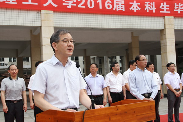 6月22日上午8点,学校在校本部教学楼前广场隆重举行2016届本科生毕业典礼。5459名毕业生将从这里起航,带着母校的殷切希望和祝福,走向人生新的征程。