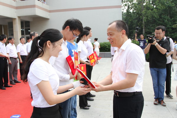 校党委书记郭永存为服务西部计划志愿者颁发证书