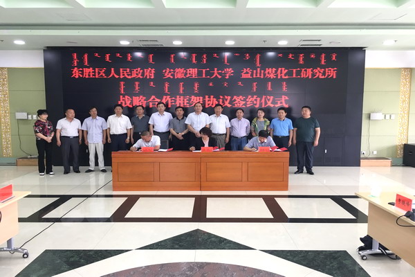 为落实安徽省政府与内蒙古自治区政府签署的《能源战略合作协议》,安徽理工大学与鄂尔多斯市东胜区人民政府、鄂尔多斯市益山煤炭应用化学研究所三方签订战略合作框架协议。7月4日,签订仪式在东胜区人民政府会议室举行。我校副校长孟祥瑞出席签字仪式。