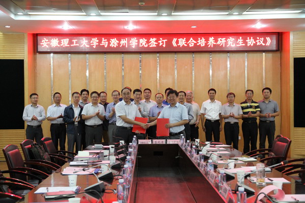 9月21日下午,滁州学院党委书记庆承松、校长许志才等一行10人来校交流工作。校党委书记郭永存、校长王其东、副校长郑明东热情接待来宾。双方在校本部图书馆北会议室举行座谈会和《联合培养研究生协议》签约仪式。