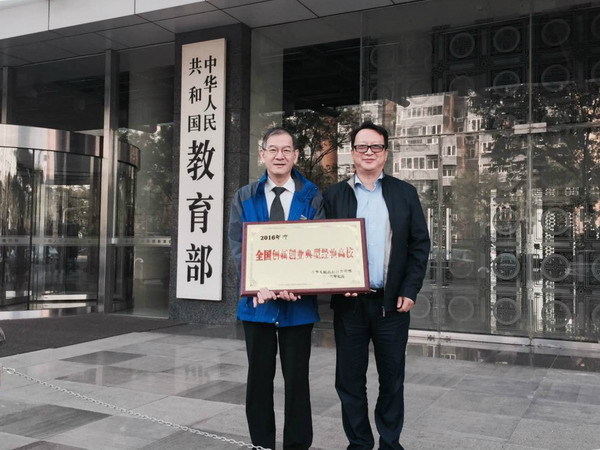 王其东(左一)接受教育部全国创新创业典型经验高校授牌