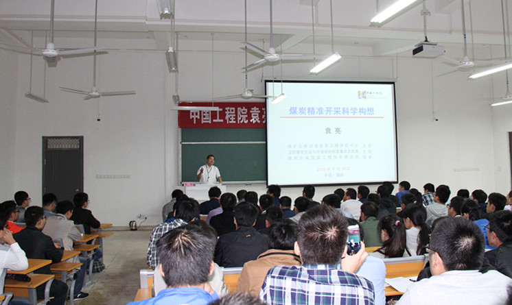 袁亮从煤炭安全开采基本情况、煤与瓦斯共采理论体系、煤炭精准开采科学构想、未来采矿科技发展等四个方面进行了深入剖析,提出了未来煤炭开采的发展方向——煤炭精准开采,并从 “煤炭精准开采”科学内涵、科学问题、研究内容、发展战略等方面作了详细论述。最后,袁亮院士与部分学生进行了深入而热烈的互动,就学生提出的一系列问题作了耐心细致的解答。