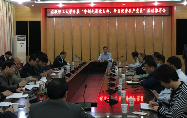 王洪简要介绍了学校开展“争创先进党支部、争当优秀共产党员”活动的意义和要求,通报了各基层党委、党总支的逐级遴选推荐情况,各基层党委、党总支共推荐先进党支部17个、优秀共产党员31人,其中教师类18人,管理及其他类13人。王洪对各级党组织能够积极主动参与“争创先进党支部、争当优秀共产党员”活动给予肯定。