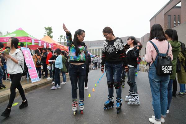 与往年不同的是,今年是第一年在新校区开展社团招新活动。为确保活动安全有序,校团委专门租赁24班次大巴运送招新工作人员1600人次前往新校区。在当日的招新现场,66个校级学生社团招新点整齐有序,每个社团都做了充分的准备,鲜艳的社旗、个性的社标非常醒目。大学生机械舞、街舞、曳步舞协会火热奔放的斗舞表演、大学生轮滑协会还安排专人扮成萌版卡通人偶绕场进行轮滑表演,使招新现场充满趣味与欢乐;大学生动漫协会、大学生魔术协会与大学生的美社将舞台搬到了招新点,在圆形广场空地上现场进行走秀、COSPLAY与神奇的近景魔术表演,看得学弟学妹们目不暇接;大学生爱心社、青年志愿者协会、大学生绿色协会等公益类社团门前更是被挤得水泄不通,“爱心包裹劝募活动”、“绿色离校活动”等全国性校园公益活动也吸引了大批新生现场咨询;大学生素瑾汉服社与鸿烈学社,积极弘扬国学和传承传统文化瑰宝,给现场增添了浓重的古韵古香;大学生航模协会、大学生机器人协会、大学生智能汽车控制协会等科技创新类社团门前也聚集了大批“学霸”报名,他们饶有兴趣地围观学长学姐制作的智能小汽车、航模、机器人,了解学校每年开展的科技创新赛事,在自己的心中悄悄种下了创新的种子。