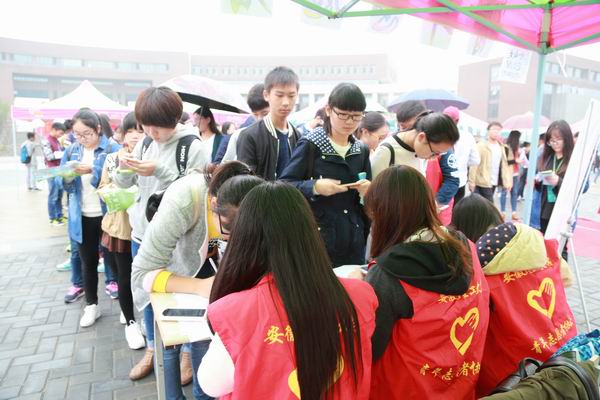 10月15日至16日,在飒飒秋雨中,位于安徽理工大学新校区核心广场上人头攒动,在校团委和大学生社团联合会的统一安排下,来自全校的66个校级学生社团汇集于此,顺利开展了一年一度的社团招新活动。全校2016级新生中共有8783人次报名加入了自己心仪的社团,其中大学生青年志愿者协会、大学生爱心社、大学生疯狂口语协会新会员人数都超过了600人,为校园社团文化的传承与发展注入了新鲜血液。