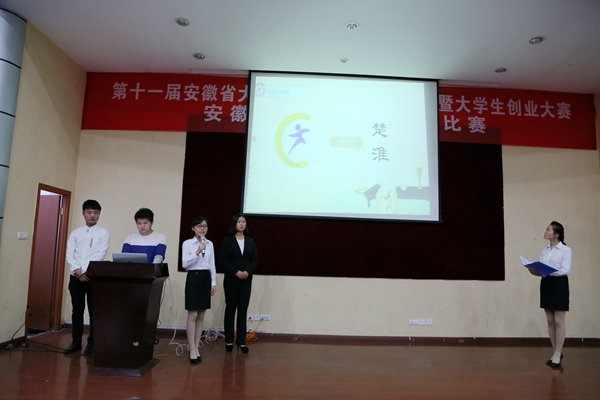 创业大赛决赛采取书面评审和现场答辩相结合方式进行。参赛团队依次上台,通过PPT陈述和实物模型演示等多种形式进行了作品展示。评委老师综合考量参赛作品的先进性、可操作性、市场应用前景、财务管理规范程度、团队组建是否合理等,对团队进行问询,并对作品进一步修改和完善提出指导性意见。经过近3个小时的紧张比赛,最终,创业组选手经济与管理学院王震同学负责的《淮天下电子商务有限责任公司》、机械工程学院周玉宝同学负责的《安徽景行智能科技有限公司》2个项目获得金奖;医学院徐玥同学负责的《云护工》等3个项目获得银奖;化学工程学院傅左强同学负责的《绿智环保有限责任公司》等4个项目获得铜奖。