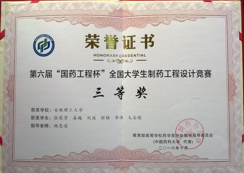 10月28日至30日,第六届“国药工程杯”全国大学生制药工程设计竞赛总决赛在湖南长沙中南大学圆满落下帷幕。我校化工学院制药工程专业张荣芳、程银、刘溪、李浩、姜越、毛安琪6位同学喜获全国三等奖。