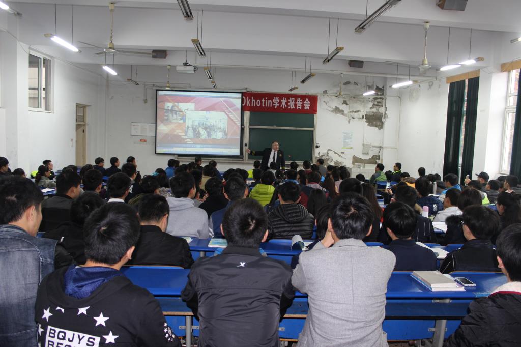 Anatoly Okhotin教授在报告中首先介绍了Irkutsk National Research Technical University,然后介绍了他所在的矿山与大地测量学院的专业发展历史、人才培养、科研方向以及测量仪器设备,并结合具体工程项目重点讲解了当前矿山测量的新技术及应用情况。报告会后,Anatoly Okhotin教授与学院师生们进行了热烈讨论,并盛情邀请师生参加2019年在Irkutsk National Research Technical University举办的第十七届国际矿山测量大会。
