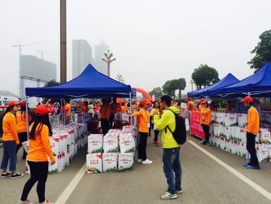 当日凌晨4点,马拉松志愿服务的集结号已悄然“吹响”,志愿者准时到达赛事要求的指定集结地点。初冬的早晨格外寒冷,志愿者们于5点半左右分别抵达各自的岗位便立即投入工作,有在主会场的服装分发管理志愿者、存衣志愿者、英文翻译志愿者,还有分配在赛道各处的区域志愿者、医疗辅助志愿者、饮水志愿者、路口指引志愿者等,各负其责参与志愿服务。8点,起跑枪响,志愿者便开始了紧张忙碌的工作。饮料分发回收、赛道实时清理、路口指引、食品补给,工作虽然繁琐,但志愿者们有条不紊。比赛不久,雨便淅淅沥沥地下了起来,但愿者们的工作热情依然高涨,用热情与汗水圆满完成了志愿服务工作。