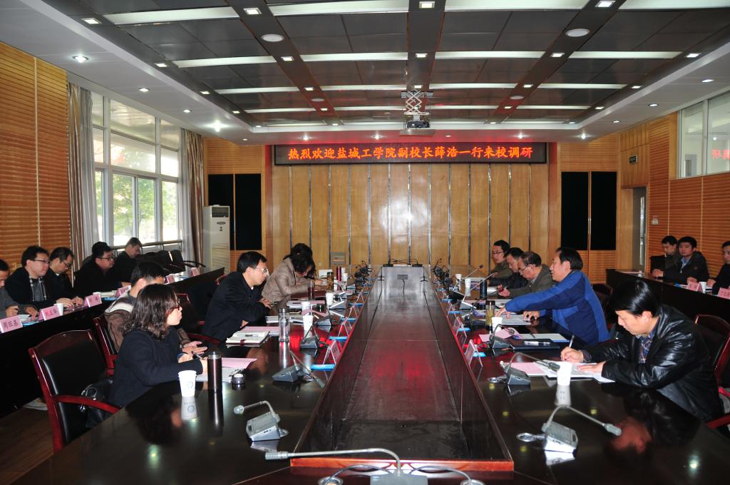 12月7日上午,盐城工学院副校长薛浩一行15人来校交流调研。副校长郑明东亲切会见了客人。