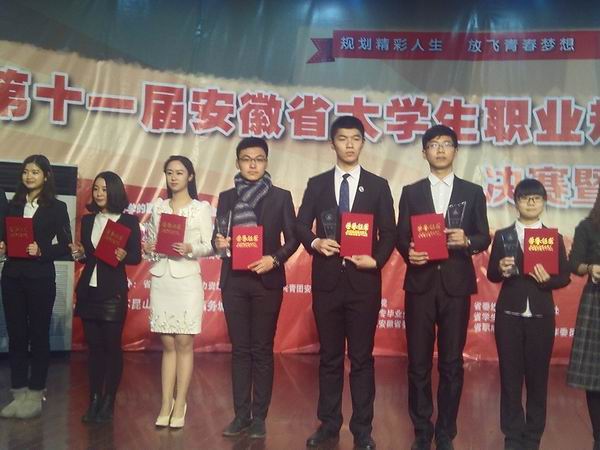 12月15日至16日,由安徽省教育厅、安徽省人力资源和社会保障厅、共青团安徽省委联合主办的“昆山花桥杯”第十一届安徽省大学生职业规划设计大赛暨大学生创业大赛总决赛暨颁奖典礼在滁州学院举行。我校荣获“最佳组织奖”,同时,经济与管理学院周中奇参赛的职业规划项目《首席财务官》和能源与安全学院蒋云、经济与管理学院方圆、李喻参赛的创业项目《淮南云泰安防科技有限责任公司》分别荣获就业组、创业组金奖,周中奇被授予省大学生“职业规划之星”称号,蒋云等被授予省大学生“创客之星”称号。