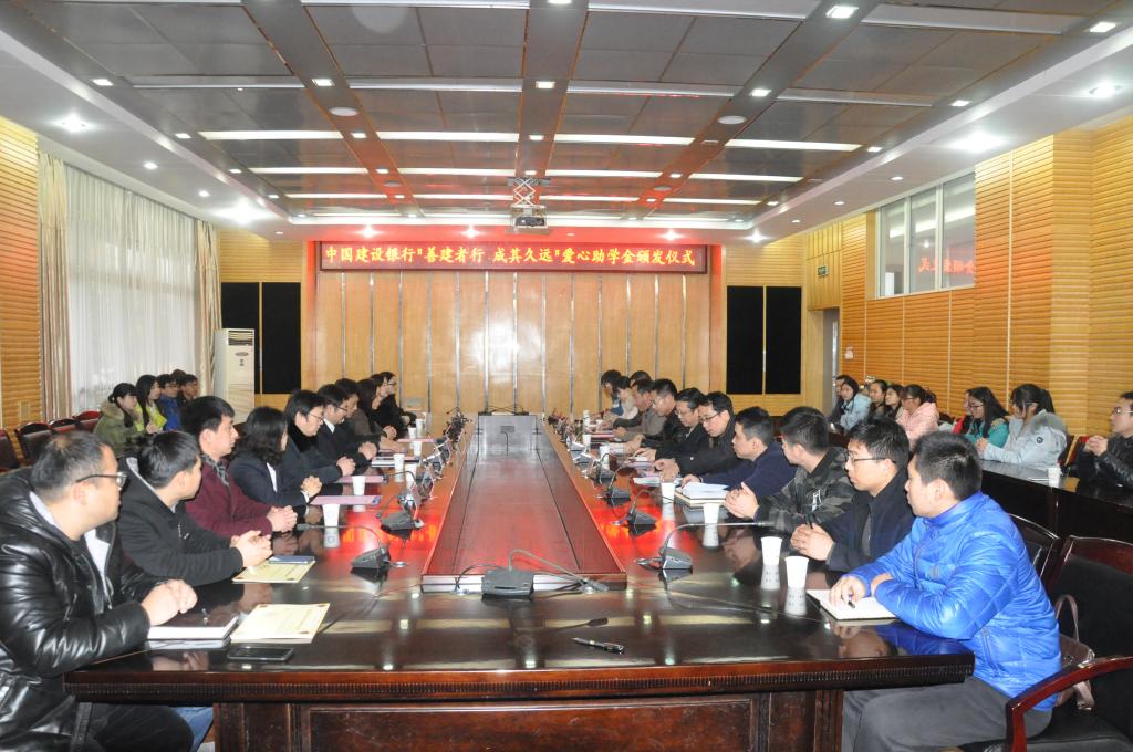 建行淮南市分行相关部门负责人;校财务处、学生处负责人,各学院资助工作联系人和20名受助学生参加了仪式。