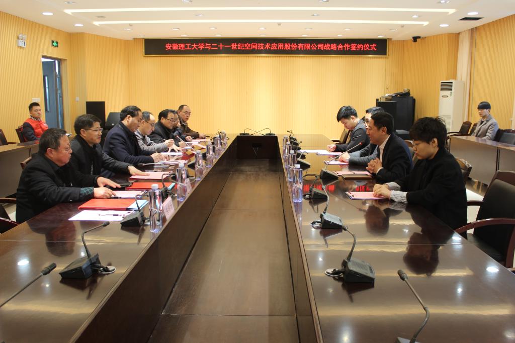 3月2日上午,安徽理工大学与二十一世纪空间技术应用股份有限公司战略合作协议签署仪式在舜耕楼西配楼二楼会议室隆重举行。副校长孟祥瑞出席会议并讲话。