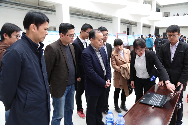 终审决赛采取海报展示、书面评审、汇报答辩三个环节相结合的方式进行。在海报展台前,郭永存、王其东认真听取了参赛选手们对其作品的创意构思、性能原理及推广价值的分析汇报,仔细观摩了作品展板、样品模型、实物及动画模拟演示,并就一些项目的技术原理、性能提升、实用价值等方面与参赛团队进行了深入探讨,为各团队方案的继续优化提供亲切指导。