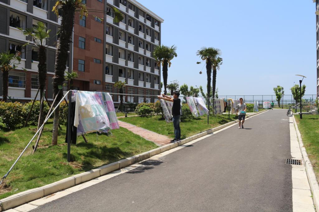 地球与环境学院的刘浩同学告诉记者:“对于新校区的居住环境,我已经很满意啦,学校还在每栋楼前安置了晒衣杆,方便了同学们的被子晾晒”。