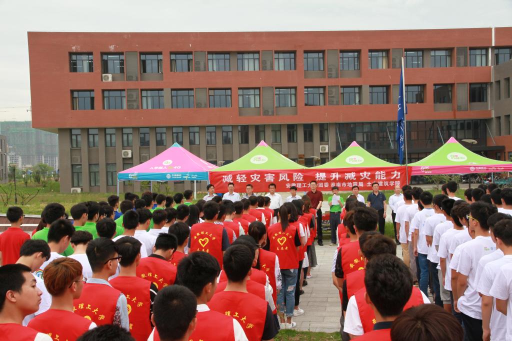 5月11日上午,由安徽理工大学团委、淮南市地震局、土木建筑学院共同举办的纪念第九个“防灾减灾日”科技宣传周活动启动仪式在学校求是楼广场顺利举行。安徽理工大学纪委书记周峰,淮南市地震局党组书记、局长龙道文,副局长韩杰出席活动。启动仪式由土木学院党委书记盛真主持。