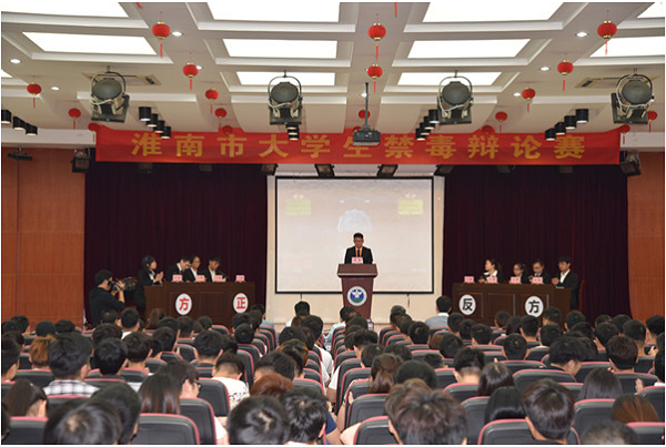 5月11日,由淮南市团市委、淮南市禁毒办主办的淮南市大学生禁毒辩论赛在安徽工贸职业技术学院举行。来自安徽理工大学和淮南师范学院的辩手们,就“禁毒工作主要依靠政府的力量”、“禁毒工作主要依靠社会的力量”展开辩论。安徽理工大学代表队为正方,淮南师范学院代表队为反方。