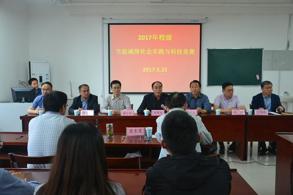 5月15日下午,2017年大学生节能减排社会实践与科技竞赛校级选拔赛在励学楼B403报告厅顺利举行。副校长郑明东出席开幕式并讲话。教务处、校团委、学生工作处、研究生院、国有资产管理处等竞赛主办单位领导与相关专家评委出席决赛,各参赛选手、指导老师及学生共120余人参加了此次校级决赛。