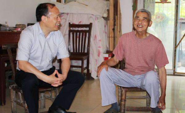 上午,郭永存来到柏园南村生活区,看望了地球与环境学院环境科学与工程系退休教工党员69岁的胡多朝同志。郭永存坐在小竹椅上,亲切地同胡多朝攀拉起了家常,关心询问他大病后的身体康复状况,希望他能够继续保持乐观向上的生活态度,继续坚定信心,定期检查,保重好身体。下午,郭永存来到义苑1号楼B楼231宿舍,慰问了数大学院信息与计算科学14-2班的学生党员赵晓东。郭永存详细了解其家庭困难情况和其学习情况,当得知连续两年获得国家励志奖学金,专业排名第一时,郭永存非常高兴,鼓励他再接再厉,取得更大进步。