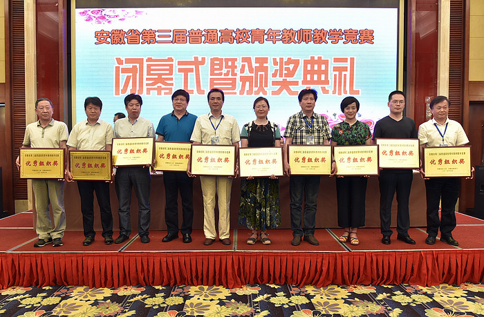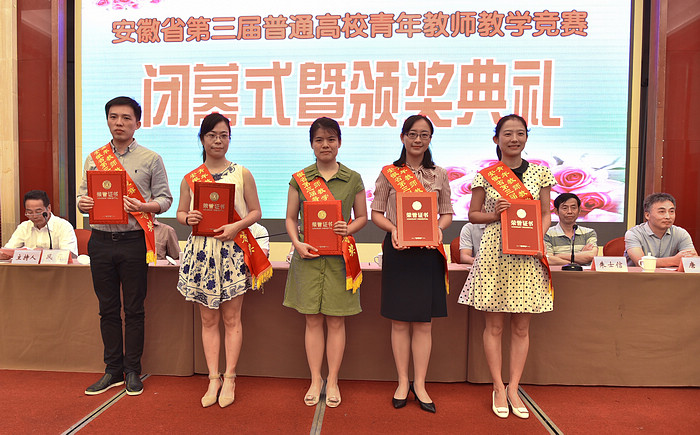 7月7日,安徽省第三届普通高校青年教师教学竞赛在安徽师范大学落下帷幕。经过两天的激烈角逐,我校李洁老师获得人文社会科学组一等奖,并以位列第一名的优异成绩,获得安徽省五一劳动奖章。张双双老师获得自然科学应用学科组一等奖;方欢老师获得自然科学基础学科组二等奖。我校总成绩名列榜首,被授予“优秀组织奖”。