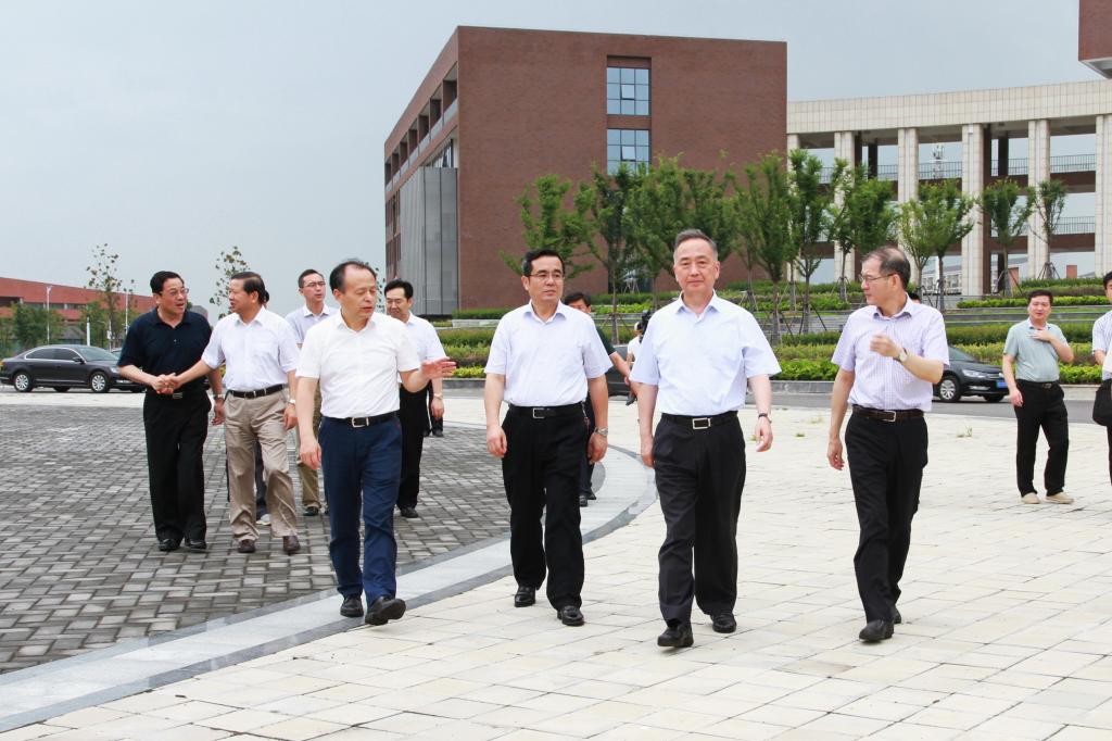 校党委书记郭永存,校党委副书记、校长王其东,校党委副书记、副校长袁亮热情接待了徐立全一行,并陪同参观了校园。在核心区仰山广场,校领导向徐立全介绍了学校新校区建设情况、功能布局以及学校学科建设、人才培养情况。