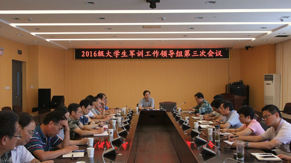 8月24日上午,学校在舜耕苑二楼会议室召开2016级学生军训工作领导组第三次会议,总结前期军训工作情况,安排部署汇演暨总结表彰工作。校党委常委、副校长、校2016级学生军训工作领导组组长吴照明主持会议并讲话。