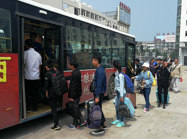 新生和家长在淮南长途汽车站有序乘车(摄影:赵埕萱)