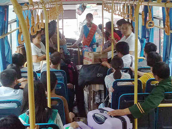 大学生礼仪志愿者跟车带领新生和家长前往新校区(摄影:梁克靖)