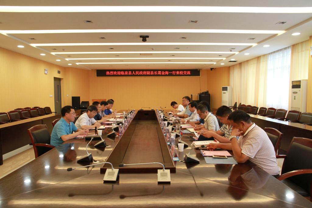 与会双方围绕支持临泉职业技术学校师资队伍建设、农产品定向高校食堂销售、美丽乡村规划建设等方面进行了深入探讨,初步达成了合作意向。