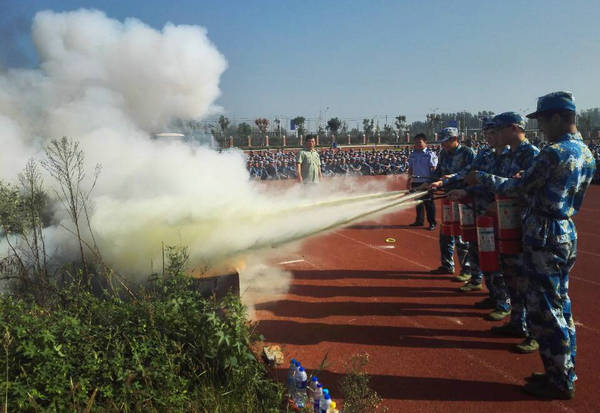 军训中增加消防基础知识教育培训,是我校开展“安全年”活动中的一项重要内容,也是学校创新学生安全教育的一项新举措。通过理论与实践的结合,广大新生在心目中切实增强了“消防就在身边”的安全防范意识,为构筑“平安、和谐”的校园生活奠定良好的消防安全基础。