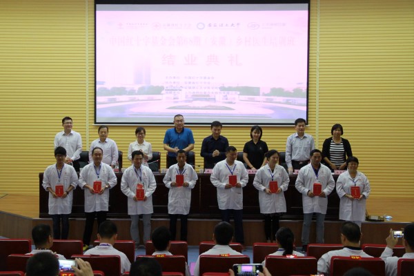 中国红十字基金会秘书长助理傅阳、中国红十字基金会基础医疗服务项目中心专员朱思琪、上汽通用五菱汽车股份有限公司工会慈善专员何思圆、安徽省红十字会事业发展部部长张本该、淮南市红十字会秘书长陈玉琴、医学院党委副书记(主持工作)刘群红和来自全省各地市的100名乡村医生参加了结业典礼。