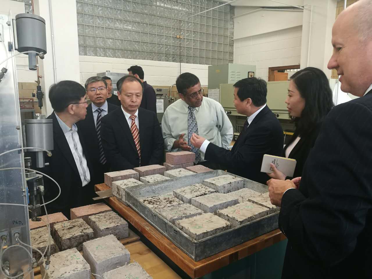 在底特律大学,郭永存一行与该校校长Antoine Garibaldi教授、副校长Pamela Zarkowski教授、机械工程学院院长Shuvra Das教授、土木建筑环境学院院长Utpal Dutta教授、人文及教育学院院长Mark Denham教授等相关行政人员和教师代表就如何更好地深化和推动彼此间的合作进行了深入的探讨,在学生联合培养、教师培训以及建立联合研究中心等方面进行了详细的讨论并达成一致意见。代表团一行参观了底特律大学工学院的相关实验室和市政工程,并深入到授课现场和学生活动中心,与师生进行交流,了解了课程设置、教学模式等相关问题。