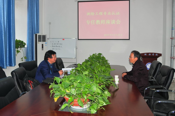 11月20日下午和21日,国家工程教育专业认证专家组成员分组分时段在机械工程学院和测绘学院分别召开各类人员座谈会和访谈会,就测绘技术与仪器专业和测绘工程专业建设情况进座谈和访谈。