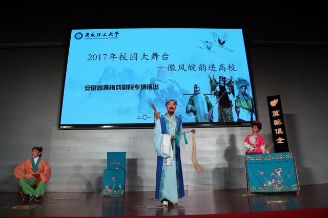 据悉,“校园大舞台——徽风皖韵进高校”活动由安徽省委宣传部、省教育厅、省文化厅主办,安徽理工大学承办,以高校学生为主要观众,旨在普及和弘扬具有安徽特色的文化艺术演出,充分展示安徽黄梅戏艺术成果,推动中华优秀传统文化在高校师生中的传承和发展。