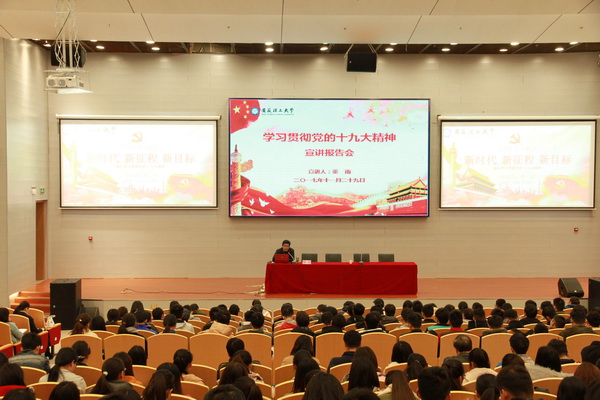 11月29日上午,学校在舜耕会堂举行学习宣传贯彻党的十九大精神宣讲报告会。校党委常委、副校长、校宣讲团副团长董雨作宣讲报告。