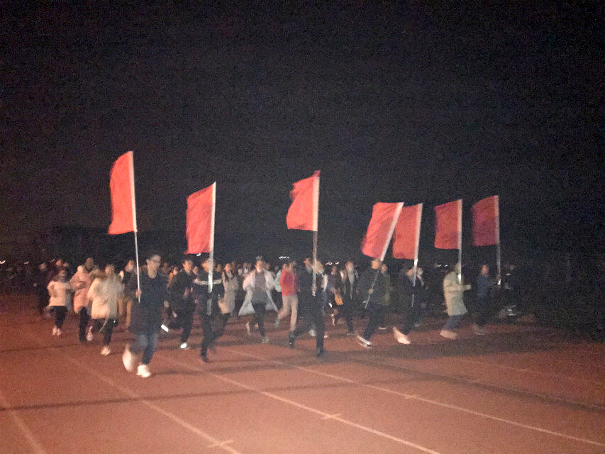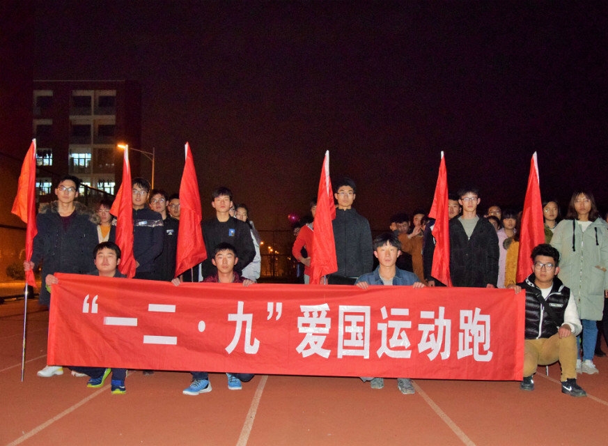 当晚,同学们到达指定地点后排成有序纵队,在旗手的带领下,高喊“铭记历史、勿忘国耻;勇担责任、强身报国”等口号,环绕操场开始奔跑。虽然天气寒冷,冷风刺骨,但每位同学都精神焕发,他们用昂扬的精神、坚韧的品质和满腔的热血驱走严寒,一路向前。每位参与同学顺利完成了1290米的规定里程。