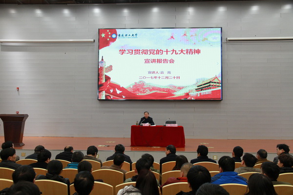 12月20日上午,学校在舜耕会堂举行学习宣传贯彻党的十九大精神宣讲报告会。校党委副书记、副校长、校宣讲团副团长袁亮院士作宣讲报告。校党委常委、副校长董雨主持报告会。