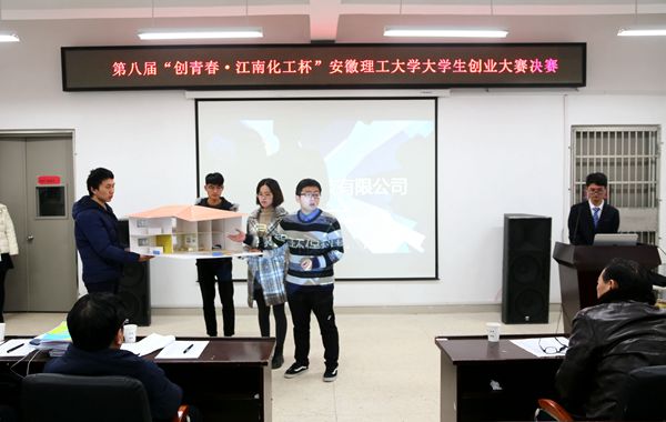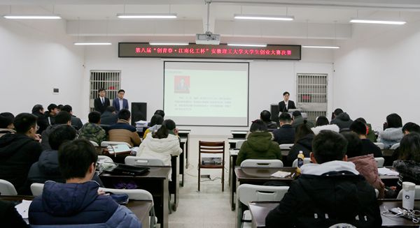 1月6日,第八届“创青春·江南化工杯”安徽理工大学大学生创业大赛终审决赛在厚德馆B207报告厅举办。