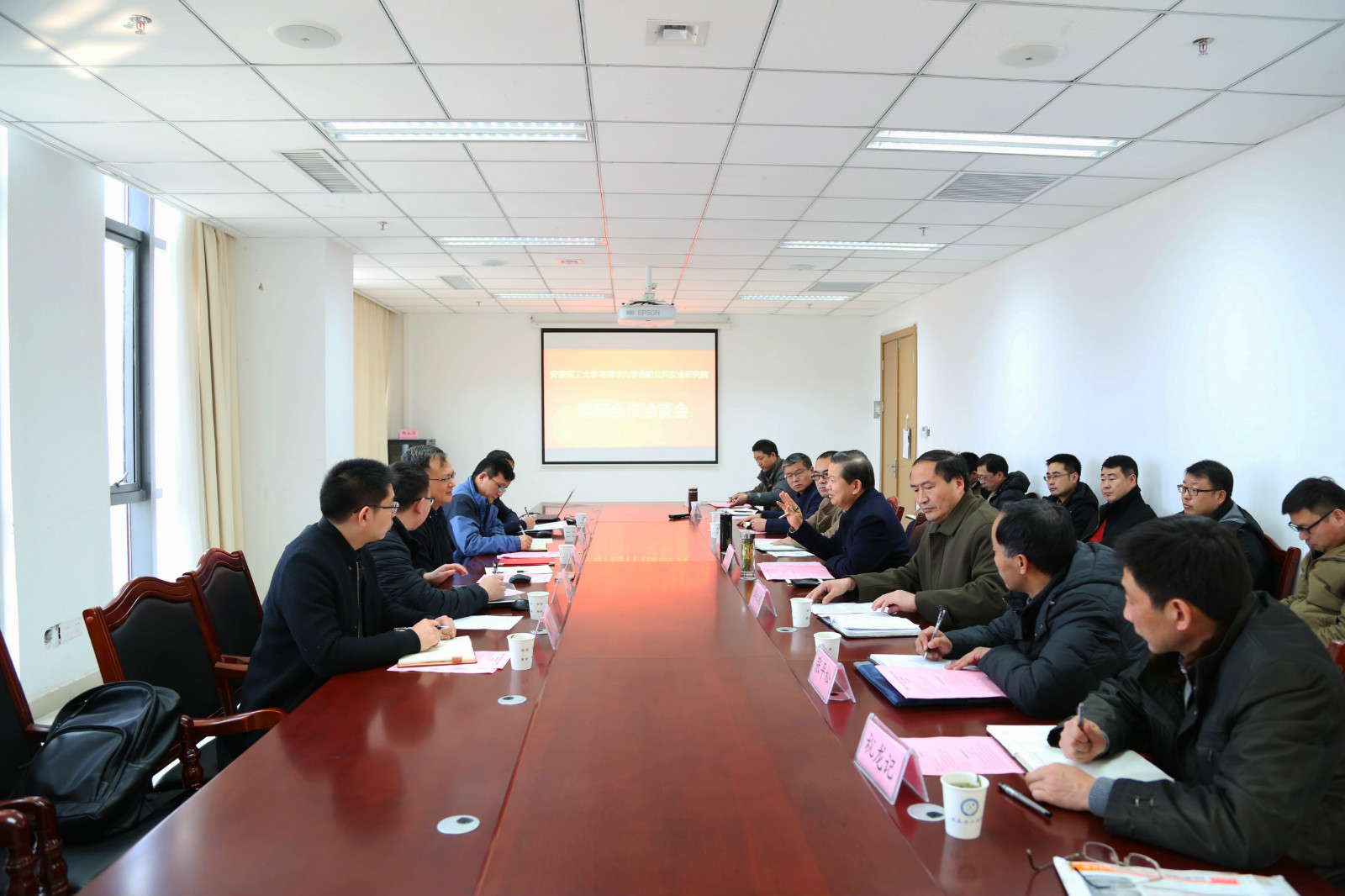 1月17日,清华大学合肥公共安全研究院执行院长袁宏永、副院长汪曙光等一行5人来校交流科研合作事宜。座谈会在舜耕楼1210会议室召开。校党委副书记、副校长袁亮院士主持会议。