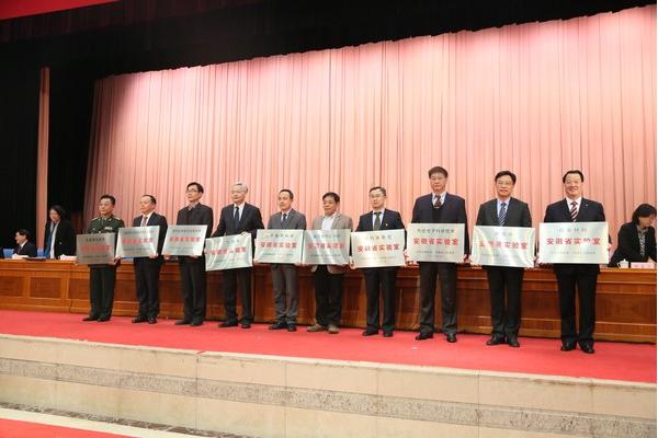 大会为首批启动建设的10家安徽省实验室、10家安徽省技术创新中心等授牌。我校深部煤矿采动响应与灾害防控实验室名列其中,并获一次性奖励500万元。郭永存代表学校上台接受授牌。