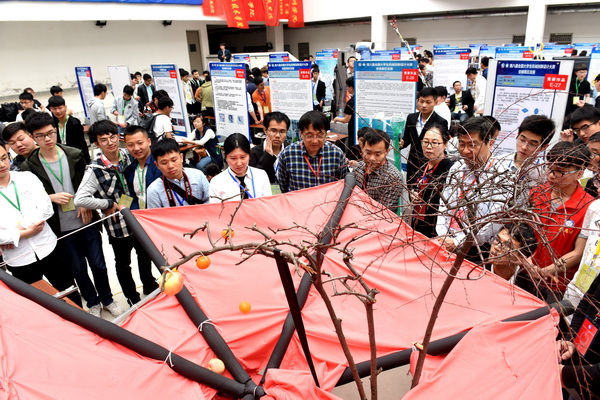 小记走进位于厚德馆的作品展示现场,只见一排排整齐的展板前放置了一系列样式奇特的比赛作品:有小巧玲珑的模型装置,有大型复杂的机械设备,比赛选手们正在一遍遍地检查着自己的作品,为答辩展示做最后的准备。