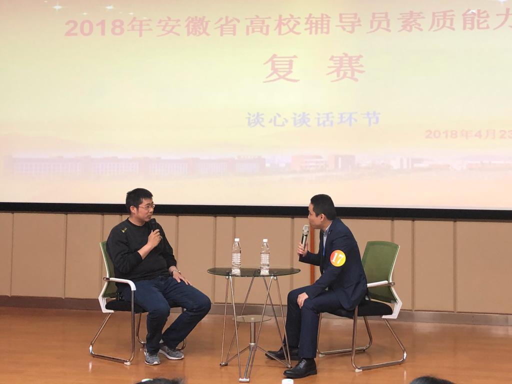 4月23日至24日,安徽省2018年高校辅导员素质能力大赛复赛(皖北赛区)在淮南师范学院举行。包括我校在内的皖北片23所高校的35名辅导员参加了本次大赛。经激烈角逐,我校李攻明、周昌贵两位老师分获一等奖、优秀奖,充分展示了我校辅导员扎实的理论功底、良好的精神风貌和精湛的职业能力。
