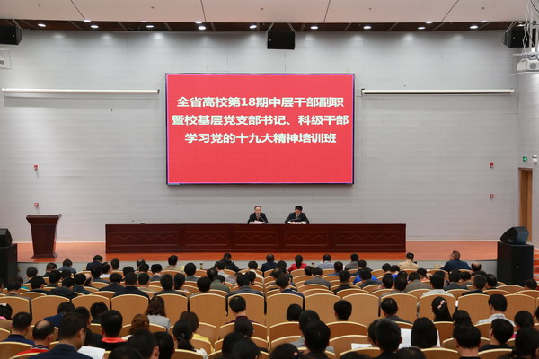 4月26日上午,全省高校第18期中层干部副职暨校基层党支部书记、科级干部学习贯彻党的十九大精神培训班在舜耕会堂开班。校党委书记郭永存作开班动员讲话。校党委常委、纪委书记周峰主持会议。