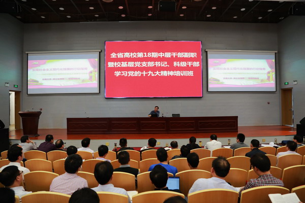 4月27日下午,安徽大学哲学系教授、博士生导师裴德海应邀来校在舜耕会堂围绕习近平新时代中国特色社会主义思想,为全省高校第18期中层干部副职暨校基层党支部书记、科级干部学习贯彻党的十九大精神培训班全体学员作辅导报告。