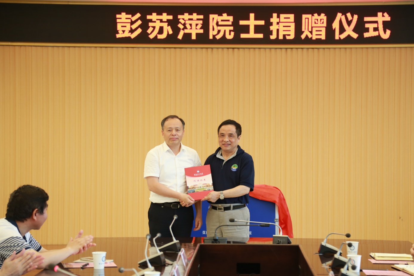 郭永存为彭苏萍院士颁发捐赠证书