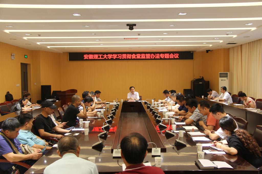 为认真贯彻落实学校基本建设和后勤保障工作会议精神,确保《安徽理工大学食堂监督管理办法》的各项规定要求落地落实,7月6日下午,学校在舜耕苑二楼会议室召开学习贯彻食堂监管办法专题会议。校党委常委、副校长吴照明出席会议并讲话。
